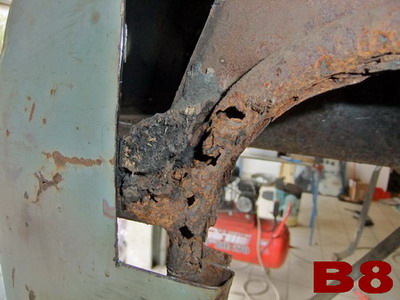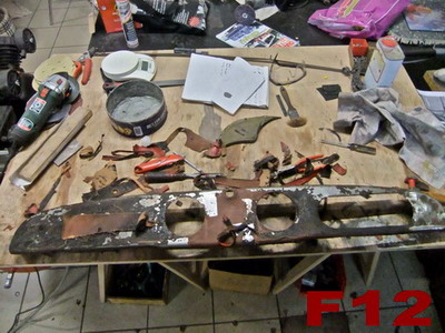 | LES DOSSIERS DU CARMS Suivez les étapes de la restauration: par André Charreyron Restauration d'une Panhard Junior, un petit roadster produit à partir d'avril 1952 jusqu'en 1956 à 4708 exemplaires, première petite sportive française de l'après-guerre: 850 cc 635 kg 42 cv, 2 cylindres à plat, refroidissement air, traction AV. Ce moteur de 850cc termine sa carrière sur les 24CT; il développe alors 60 cv. Il aura gagné, entre autre, 10 fois le Mans à l'indice performance. Je souhaitais me lancer dans une restauration TOTALE d'une voiture populaire, française. Le Junior avait retenu mon attention à Rétromobile, et sans trop regarder les dessous de la bête découverte dans l'arrière-boutique d'un Montbrisonnais, j'achète l'épave en mars 2014. Sortie de grange ? Non ! sortie du parking d'une usine désaffectée, une sans abri depuis 10 ans avec des trous de balles de 9mm dans le cul ! Transport à la maison, démontage, et alors là, surprise! POURRIE de POURRIE! En dehors du châssis, du porte-clé et de la baguette de capot... tout est à refaire: moteur, boite, carrosserie en état de décomposition avancée, essieux, suspension, direction, freinage, électricité bien évidemment, tout l'intérieur, sièges, tableau de bord etc.etc... avec rats séchés dans les sièges et nids à poules dans le coffre ! Je me pose la question: je rends ou je garde? Je prends l'avis de copains mécano et carrossiers "tout est faisable, mais moi, je ne le ferai pas!". Il est bien des choses qui ne paraissent impossibles que tant qu'on ne les a pas tentées... si c'est idiot et que ça marche, alors ce n'était pas idiot ! on verra ça plus tard... il paraît que l'on commence à vieillir quand on finit d'apprendre... alors, en avant la musique ! Ayant des connaissances de base limitées en mécanique, aucune en carrosserie, j'ai écouté les copains spécialistes (dont certains m'ont beaucoup appris et aidé), passé du temps sur internet, en déplacement chez les "panhardistes" entre autres... Le but de ce compte rendu est de montrer à celui qui comme moi, souhaiterait savoir comment faire, ce que l'on peut réaliser avec des connaissances limitées, avec volonté et imagination. J'ai retenu ce proverbe chinois "lorsque quelqu'un partage avec vous quelque chose d'important dont vous pouvez bénéficier, vous avez une obligation morale de la partager avec d'autres". Si je peux aider quelqu'un, je le ferai de mon mieux. Objectif: Il faut que ça roule dans 2 ans! Arrivée de la Junior: MARS 2014   ![]() A1 - découverte chez le vendeur                         A2 - il est pas dans la merde le Dédé !   ![]() A3 - ça promet !                                 A4 - le plancher a l'air fatigué... Démontage pour sablage de la caisse   ![]() B1 - démontage de la caisse                         B2 - démontage de la caisse   ![]() B3 - démontage châssis, moteur...                             B4 - sièges, plancher...   ![]() B5 - suspension, amortisseurs, silent bloc, direction, tout dans le même état!                 B6 - sous la tôle, la structure en tube est décomposée   ![]() B7 - sous la tôle, la structure en tube est décomposée                 B8 - sous la tôle, la structure en tube est décomposée !   ![]() B9 - sous la tôle, la structure en tube est décomposée                       B10 - la disqueuse va chauffer !   ![]() B11 - le cul du Junior a servi de cible à des tireurs égarés...                 B12 - en route au sablage pour "chercher" la rouille cachée ! Retour de sablage, 15 mai 2014 Le sableur a fait du bon boulot! Bosses et dentelles sont mises en valeur! Du pain sur la planche pour une bonne année... dans l'ordre, acheter du matériel électrique et pneumatique, poste à souder... apprendre à souder, à travailler la tôle, choisir la bonne tôle...   ![]() C1 - la bonne surprise: châssis "nickel"                         C2 - la caisse est presque jolie...   ![]() C3 - Bosses et dentelles !...                             C4 - Bosses et dentelles !   ![]() C5 - Bosses et dentelles !                     C6 - Bosses et dentelles ! Châssis - Moteur - Boîte, mai-juin-juillet 2014 Restauration moteur: remplacement cylindres, pistons, segments, roulements... Pompe essence et circuit essence - pipe admission et ligne échappement complète - dynamo, démarreur, allumage - restauration complète de la boîte... Châssis: amortisseurs, lames de ressorts, essieux... Freinage: maitre cylindre, cylindres de roues, mâchoires, roulements, tuyauterie... Merci à mon copain Jeannot, un ancien Panhardiste! Pas facile les moteurs Panhard !!!   ![]() D1 - Remontage châssis                             D2 - Remontage moteur après restauration totale   ![]() D3 - Carburateur                             D4 - Restauration boîte/pont   ![]() D5 - Remontage moteur/boîte sur châssis                     D6 - Remontage moteur/boîte sur châssis Réparation carrosserie, août 2014 à mars 2015 Raccords de tôle sans soudure pour éviter la déformation. Après soyage, la tôle est collée et rivée avec des produits utilisés aujourd'hui dans l'automobile et l'aviation. 4m3 de gaz, 10m2 de tôle, plus de 10m de tube et plus de 400 rivets ont été nécessaires !   ![]() E1 - Préparation de la tôle                   &nbs         E2 - Fabrication des matrices pour le pliage des tubes   ![]() E3 - Fabrication des matrices pour le pliage des tubes                    E4 - Système D pour plier des tubes garnis de sable   ![]() E5 - Mise en place des nouveaux tubes                 E6 - Mise en place des nouveaux tubes   ![]() E7 - Formage des tôles                 &nbs     E8 - Soyage   ![]() E9 - Rivetage et collage                       E10 - R