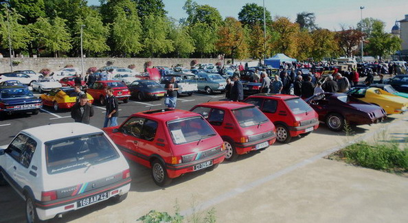 Le beau temps est avec nous et rapidement la totalité de la place est occupée (environ 150 places). Des adhérents présentent leur nouvelle voiture: Gérard B montrait enfin sa superbe Triumph TR3 A 1961 de 102 cv, elle lui demandera plus de deux ans de restauration tumultueuse. Jean-Gilles F. était venu avec une Renault 10 Major phase 2 de 1967. David C. avec sa Renault 5 Turbo kit Bozian attirait les curieux un bruit et un look de 2 mais... moteur à l'avant !