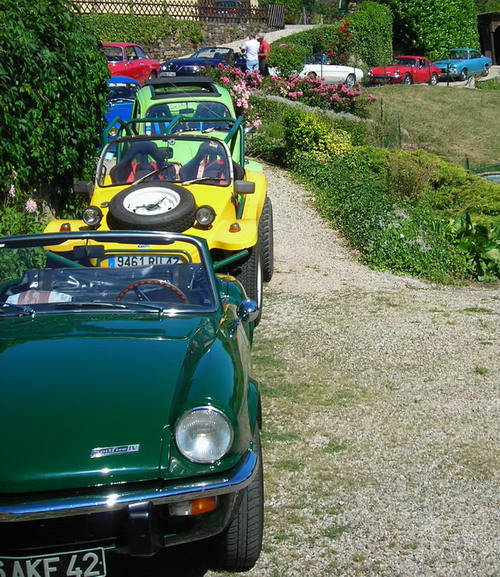 Et quelle journée ! Sous le soleil radieux les cabriolets sont à la fête pour la traversée des monts du Jarez , St CHRISTO ,VALFLEURY , les vergers de CELLIEU , St PAUL et enfin LA TERRASSE sur DORLAY où nous attend un énorme petit déjeuner préparé par nos hôtes Marie-Laure et Roland.