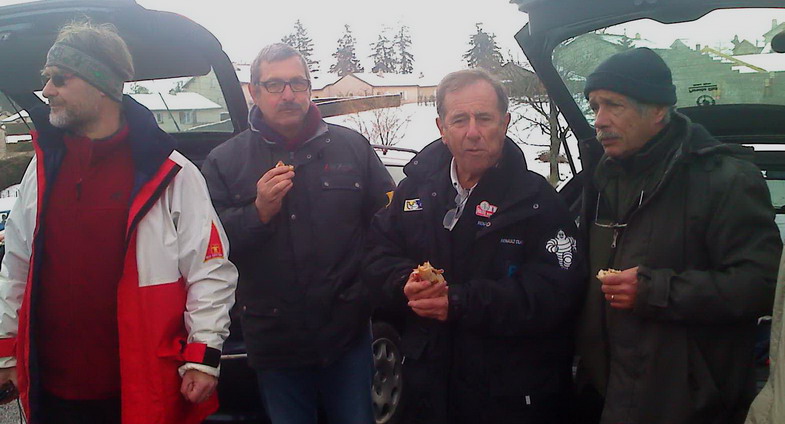 Il est 11h30, à peine le temps de déballer casse croûtes et thermos à l'arrière des voitures, que la Gordini blanche N°8 de Jeannot (Ragnotti) se gare devant nous !