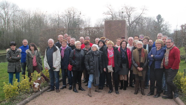 Mais la journée s'étire et il est temps d'envisager de quitter ce "carus locus", nom latin initial de la ville, ce "cher lieu" qui est devenu Charlieu. Retour vers nos chères autos et reprise du road book. Vers Melay, une stèle à la mémoire de Jean MOULIN sera l'occasion d'une dernière photo de famille. Puis ce fut le retour, par un autre parcours qu'à l'aller, l'occasion pour certains de rentrer directement, ou de suivre l'itinéraire proposé, à condition de ne pas se perdre, et donc, pour quelques uns le plaisir d'un premier jardinage de printemps !