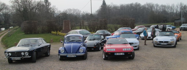 Formidable, à 8 h 11 tout le monde était là. Une trentaine de voitures: des BMW, des Alfa, des Mercedes, des Triumph cabriolet et coupé, des Porsche, une VW Cox, quelques françaises: deux Alpine, A 110 et A 310, une Dauphine, une Clio Williams, un coupé 504. J'espère n'oublier personne !