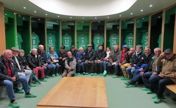 Sur place nous nous séparons en deux groupes: les uns visitent le Musée des Verts tandis que l'autre groupe entre dans le saint des saints du stade mythique de Saint-Etienne. Nous allons découvrir les coulisses du Chaudron au cours d'une visite guidée exceptionnelle. Nous pénétrerons dans les lieux habituellement réservés aux joueurs, staffs, dirigeants et officiels. Geoffroy Guichard ce petit épicier stéphanois et visionnaire qui créera , à la fin du 19ème siècle la marque CASINO qui deviendra le Groupe CASINO. En 1920 il offrit un terrain pour y installer le premier stade de l'Association Sportive de Saint-ɴienne. Aujourd'hui, le stade est toujours au même emplacement sous le contrôle pour le moment de Saint-Etienne Métropole.