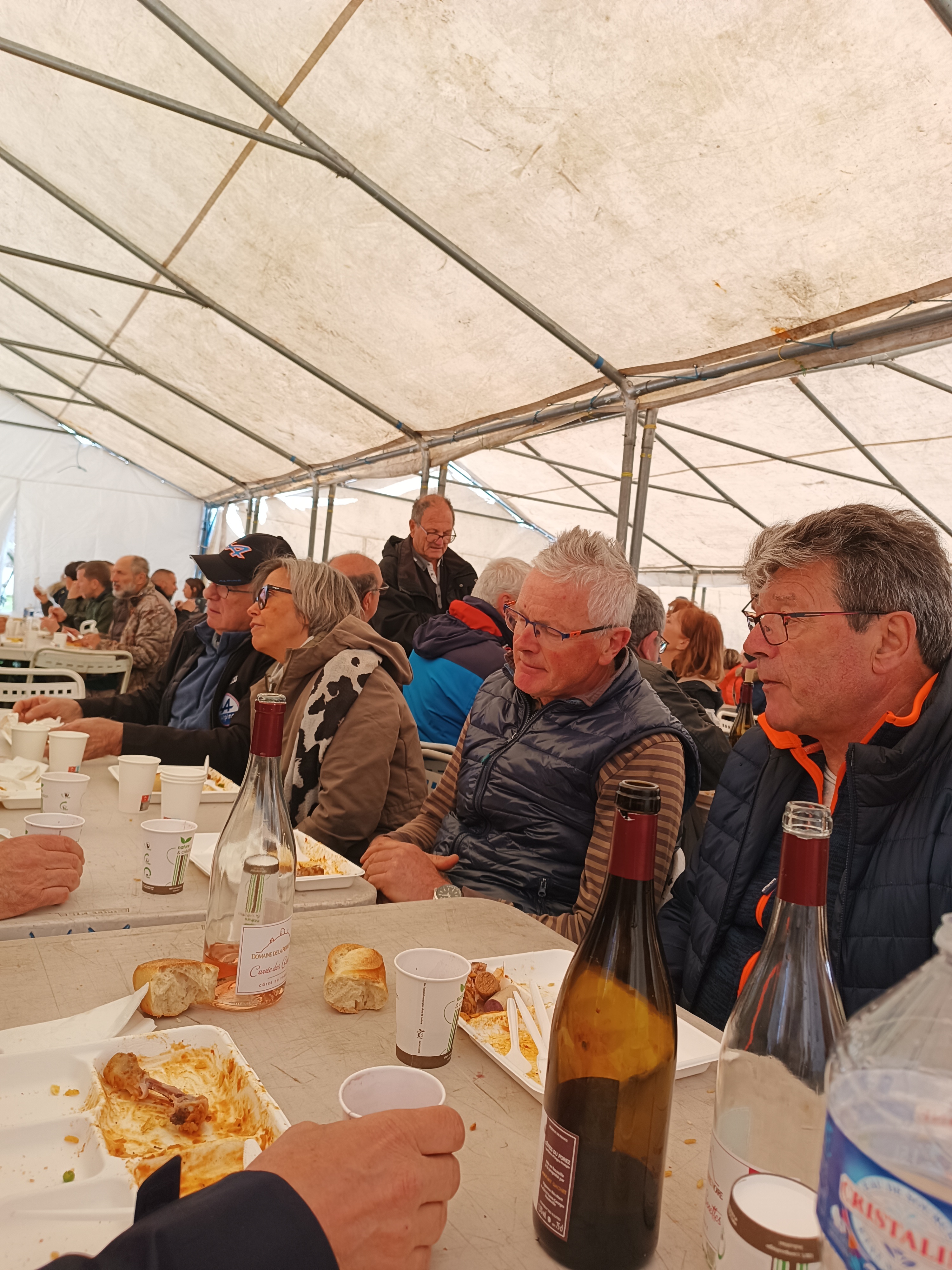 Sur place, nombres d'animations des associations locales, des spectacles et démonstrations sur scène. Certes le temps n'est pas dans ces grands jours. Nous montons quand même le barnum et l'ami Raymond à tout prévu pour que nos adhérents se retrouvent autour d'un verre de l'amitié. 12h30 il est temps d'aller manger la paëlla sous chapiteau tandis qu'au dehors la pluie s'est invitée en plus du vent froid du matin.