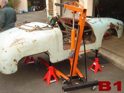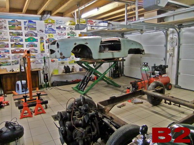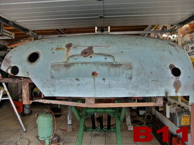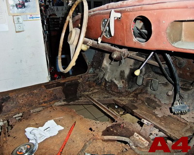 | LES DOSSIERS DU CARMS Suivez les étapes de la restauration: par André Charreyron Restauration d'une Panhard Junior, un petit roadster produit à partir d'avril 1952 jusqu'en 1956 à 4708 exemplaires, première petite sportive française de l'après-guerre: 850 cc 635 kg 42 cv, 2 cylindres à plat, refroidissement air, traction AV. Ce moteur de 850cc termine sa carrière sur les 24CT; il développe alors 60 cv. Il aura gagné, entre autre, 10 fois le Mans à l'indice performance. Je souhaitais me lancer dans une restauration TOTALE d'une voiture populaire, française. Le Junior avait retenu mon attention à Rétromobile, et sans trop regarder les dessous de la bête découverte dans l'arrière-boutique d'un Montbrisonnais, j'achète l'épave en mars 2014. Sortie de grange ? Non ! sortie du parking d'une usine désaffectée, une sans abri depuis 10 ans avec des trous de balles de 9mm dans le cul ! Transport à la maison, démontage, et alors là, surprise! POURRIE de POURRIE! En dehors du châssis, du porte-clé et de la baguette de capot... tout est à refaire: moteur, boite, carrosserie en état de décomposition avancée, essieux, suspension, direction, freinage, électricité bien évidemment, tout l'intérieur, sièges, tableau de bord etc.etc... avec rats séchés dans les sièges et nids à poules dans le coffre ! Je me pose la question: je rends ou je garde? Je prends l'avis de copains mécano et carrossiers "tout est faisable, mais moi, je ne le ferai pas!". Il est bien des choses qui ne paraissent impossibles que tant qu'on ne les a pas tentées... si c'est idiot et que ça marche, alors ce n'était pas idiot ! on verra ça plus tard... il paraît que l'on commence à vieillir quand on finit d'apprendre... alors, en avant la musique ! Ayant des connaissances de base limitées en mécanique, aucune en carrosserie, j'ai écouté les copains spécialistes (dont certains m'ont beaucoup appris et aidé), passé du temps sur internet, en déplacement chez les "panhardistes" entre autres... Le but de ce compte rendu est de montrer à celui qui comme moi, souhaiterait savoir comment faire, ce que l'on peut réaliser avec des connaissances limitées, avec volonté et imagination. J'ai retenu ce proverbe chinois "lorsque quelqu'un partage avec vous quelque chose d'important dont vous pouvez bénéficier, vous avez une obligation morale de la partager avec d'autres". Si je peux aider quelqu'un, je le ferai de mon mieux. Objectif: Il faut que ça roule dans 2 ans! Arrivée de la Junior: MARS 2014   ![]() A1 - découverte chez le vendeur                         A2 - il est pas dans la merde le Dédé !   ![]() A3 - ça promet !                                 A4 - le plancher a l'air fatigué... Démontage pour sablage de la caisse   ![]() B1 - démontage de la caisse                         B2 - démontage de la caisse   ![]() B3 - démontage châssis, moteur...                             B4 - sièges, plancher...   ![]() B5 - suspension, amortisseurs, silent bloc, direction, tout dans le même état!                 B6 - sous la tôle, la structure en tube est décomposée   ![]() B7 - sous la tôle, la structure en tube est décomposée                 B8 - sous la tôle, la structure en tube est décomposée !   ![]() B9 - sous la tôle, la structure en tube est décomposée                       B10 - la disqueuse va chauffer !   ![]() B11 - le cul du Junior a servi de cible à des tireurs égarés...                 B12 - en route au sablage pour "chercher" la rouille cachée ! Retour de sablage, 15 mai 2014 Le sableur a fait du bon boulot! Bosses et dentelles sont mises en valeur! Du pain sur la planche pour une bonne année... dans l'ordre, acheter du matériel électrique et pneumatique, poste à souder... apprendre à souder, à travailler la tôle, choisir la bonne tôle...   ![]() C1 - la bonne surprise: châssis "nickel"                         C2 - la caisse est presque jolie...   ![]() C3 - Bosses et dentelles !...                             C4 - Bosses et dentelles !   ![]() C5 - Bosses et dentelles !                     C6 - Bosses et dentelles ! Châssis - Moteur - Boîte, mai-juin-juillet 2014 Restauration moteur: remplacement cylindres, pistons, segments, roulements... Pompe essence et circuit essence - pipe admission et ligne échappement complète - dynamo, démarreur, allumage - restauration complète de la boîte... Châssis: amortisseurs, lames de ressorts, essieux... Freinage: maitre cylindre, cylindres de roues, mâchoires, roulements, tuyauterie... Merci à mon copain Jeannot, un ancien Panhardiste! Pas facile les moteurs Panhard !!!   ![]() D1 - Remontage châssis                             D2 - Remontage moteur après restauration totale   ![]() D3 - Carburateur                             D4 - Restauration boîte/pont   ![]() D5 - Remontage moteur/boîte sur châssis                     D6 - Remontage moteur/boîte sur châssis Réparation carrosserie, août 2014 à mars 2015 Raccords de tôle sans soudure pour éviter la déformation. Après soyage, la tôle est collée et rivée avec des produits utilisés aujourd'hui dans l'automobile et l'aviation. 4m3 de gaz, 10m2 de tôle, plus de 10m de tube et plus de 400 rivets ont été nécessaires !   ![]() E1 - Préparation de la tôle                   &nbs         E2 - Fabrication des matrices pour le pliage des tubes   ![]() E3 - Fabrication des matrices pour le pliage des tubes                    E4 - Système D pour plier des tubes garnis de sable   ![]() E5 - Mise en place des nouveaux tubes                 E6 - Mise en place des nouveaux tubes   ![]() E7 - Formage des tôles                 &nbs     E8 - Soyage   ![]() E9 - Rivetage et collage                       E10 - R