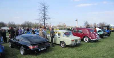 11H30, les lève-tôt et les lève-tard du CARMS se retrouvent sur les pelouses de la Bruyère pour y exposer les voitures avec d'autres clubs,