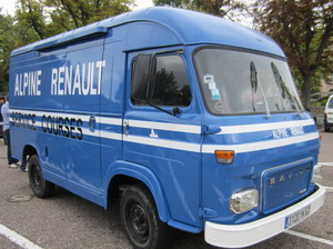 11H00 nous voyons arriver un SAVIEM SG aux couleurs du Service Course ALPINE. Raymond, notre spécialiste Alpine accueille ce fourgon du plus belle effet.