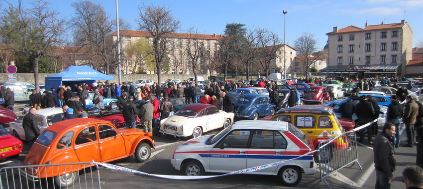 Tout est prêt pour l'ouverture de la saison. Les clubs de véhicules anciens ont été informés de nos expos 2014, des pancartes ont été disposées quelques jours avant aux différentes entrées de Montbrison, la presse locale est prévenue... tout est prêt place Bouvier dès 9h00 du matin pour recevoir nos visiteurs à cette première exposition 2014. Le soleil est lui aussi présent et les voitures ne cessent de rentrer dès 10h00 sur cette place réquisitionnée pour l'évènement et qui se montrera très vite trop petite pour y stationner tous les véhicules qui arrivent.