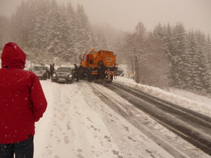 La route du retour, en milieu d'après midi, sera plus facile, les autorités, ayant sans doute estimé que les dépanneuses et autres carrossiers locaux avaient eu suffisamment de boulot ce matin, elles avaient jugé bon de faire sortir saleuses et autres chasses neige pour rendre les routes du LivradoisForez plus praticables ! Merci à elles !