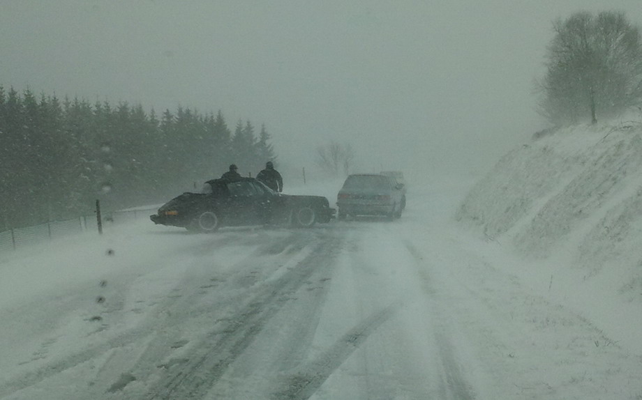 C'est une véritable tempête de neige qui s'abat sur les restes du convoi, 8 voitures, dont l'estafette, réussiront à passer partout. Chapeau bravo à eux ! Pour les autres « aventuriers », à quelques encablures des 1365m du col des Supeyres, l'enfer commence !