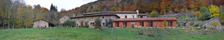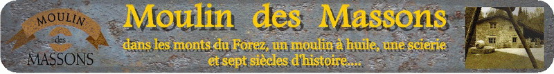 Entre bosquets et pâturages pentus, une route discrète à flanc de colline nous conduit au cur du hameau des Massons. Dans ce creux de vallon des monts du Forez, le temps s'est arrêté pour embellir un patrimoine magnifique de 7 siècles d'histoire de meunerie et de vie paysanne. Quelques marches bordées de poulies égarées parmi les touffes de fleurs, un sentier qui glisse doucement vers le fond de la vallée, nous voici arrivés au moulin des Massons.