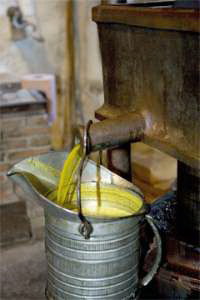 Nous voici revenus un siècle en arrière. Les poulies, les courroies, les engrenages et la meule s'animent au rythme de l'eau du Vizézy pour faire couler l'huile dans un chaud parfum de colza grillé. Telle qu'en 1903, année de la création de la scierie, la scie à ruban diffuse un chaud parfum de sciure.