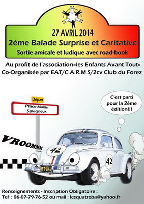 Inscrit au calendrier CARMS 2014, ce rallye amical et ludique avec road book était organisé par Évelyne et Patrick BADIOU, le CARMS et le 2cv Club du Forez.