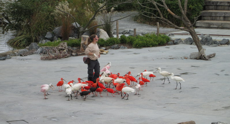 Après ce spectacle, tout un chacun put finaliser sa découverte des lieux, par exemple donner à manger directement dans la volière à les petits oiseaux multicolores et bien peu farouches. Ou aussi découvrir l'ensemble du parc depuis la tour panoramique. Et pas indispensable de monter ses 27 mètres par les escaliers, un ascenseur est même proposé.