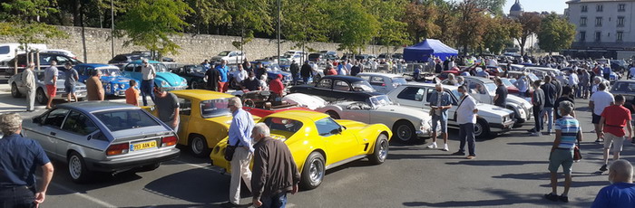 C'est la magie de ses rendez-vous, à chaque fois, un rassemblement de véhicules hétéroclites, surprenant, en état concours ou en état sortie de grange. La place Bouvier déborde, les amateurs heureux de se retrouver et de profiter d'un grand soleil font durer ce bon moment provoquant un embouteillage, certaines voitures et non des moindres (Jaguar XK140!) devant rester à l'extérieur du périmètre.
