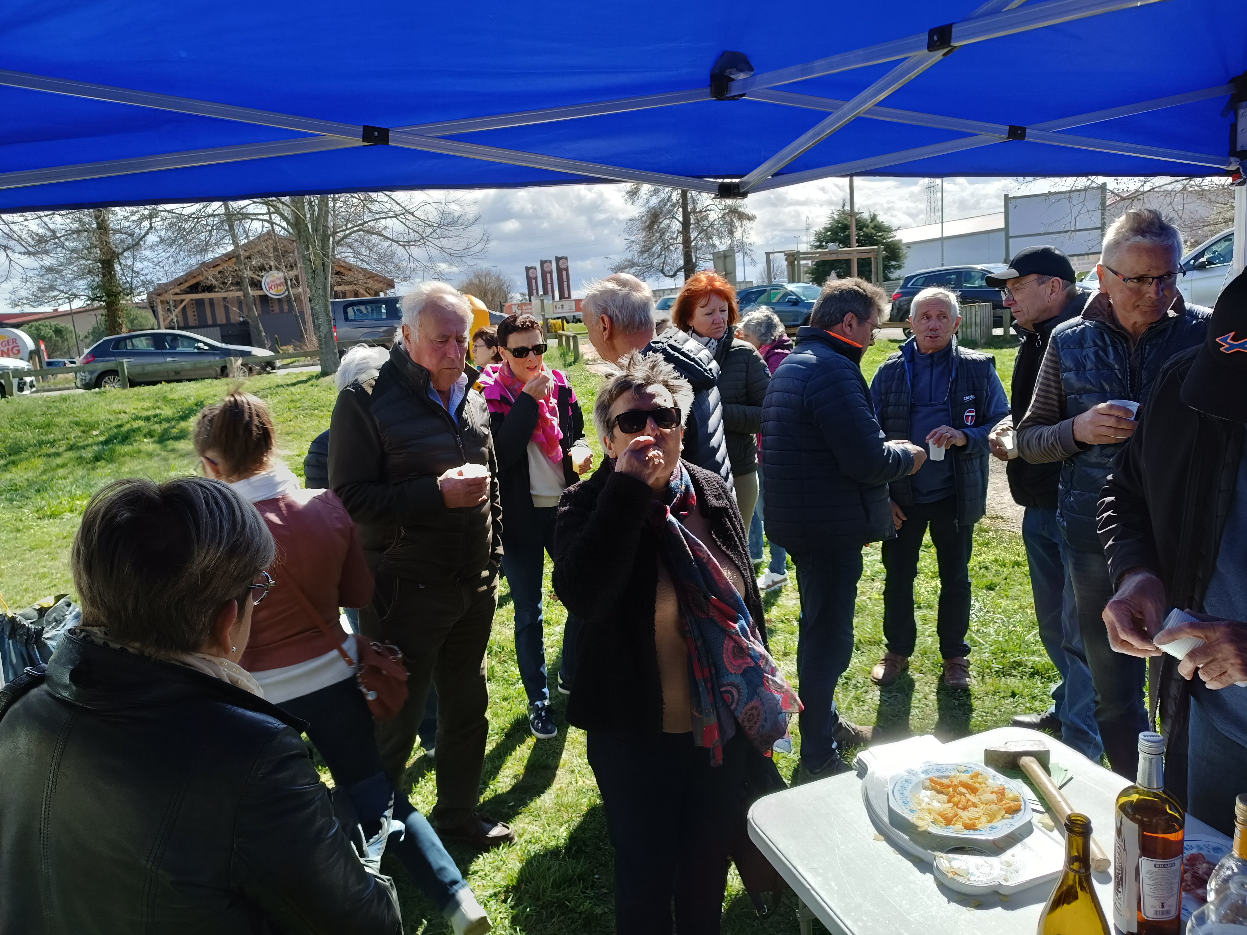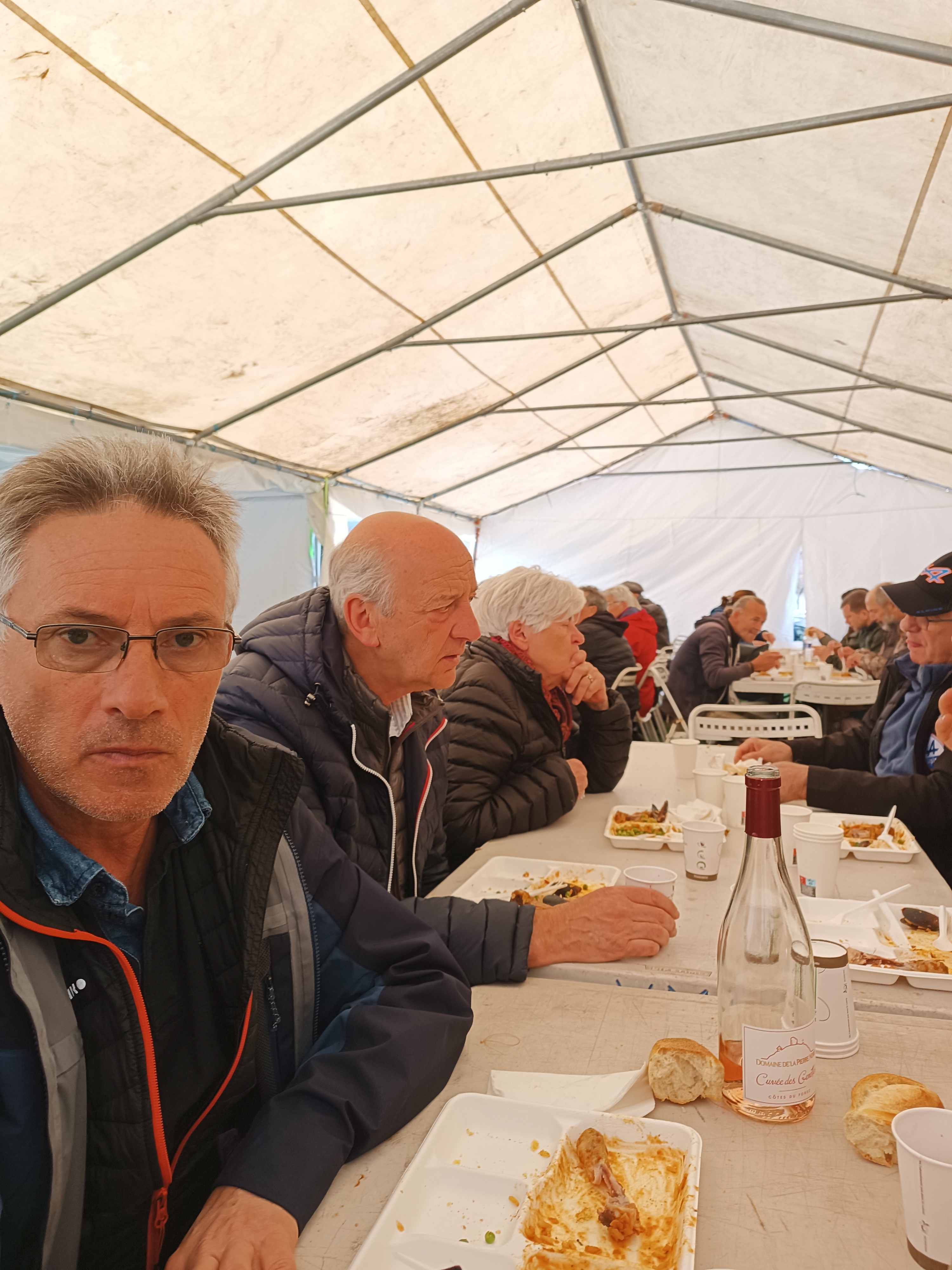 Sur place, nombres d'animations des associations locales, des spectacles et démonstrations sur scène. Certes le temps n'est pas dans ces grands jours. Nous montons quand même le barnum et l'ami Raymond à tout prévu pour que nos adhérents se retrouvent autour d'un verre de l'amitié. 12h30 il est temps d'aller manger la paëlla sous chapiteau tandis qu'au dehors la pluie s'est invitée en plus du vent froid du matin.